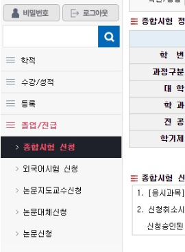 1)졸업 종합시험-응시과목은 주임교수 회의를 통해 변경될 수 있습니다.