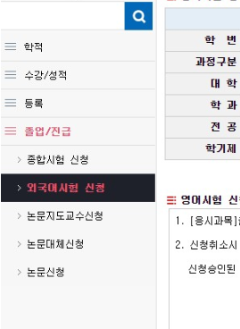1)전공,과정에 상관없이 외국어 시험은1학기부터 응시할 수 있다.